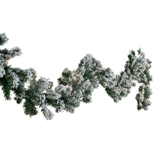 “Flot og naturtro granguirlande i plastik med lys og “”sne”” til både indendørs og udendørs brug. Denne guirlande vil du få glæde af år efter år. Guirlanden bliver oplyst af 3xAA batterier (medfølger ikke), så du har rig mulighed